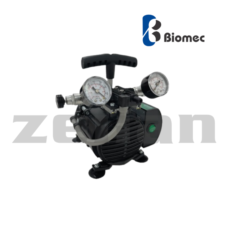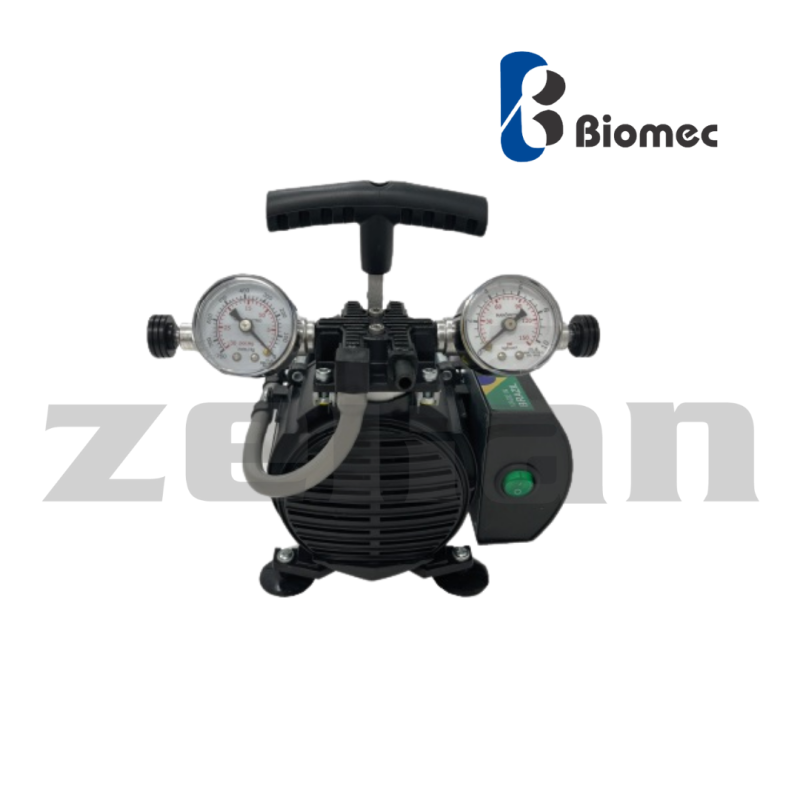 Bomba de vacío sin aceite con función de compresor para laboratorio, con cobertura de teflón. Marca Biomec, modelo ECO 260 LAB/BC PTFE
